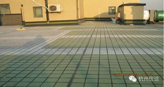 每道工序施工前,都需要先进行基层清理。在找坡层施工前,还需要干铺一道油毛毡,作为隔离层,同时也是保护层,避免保温层被破坏。
