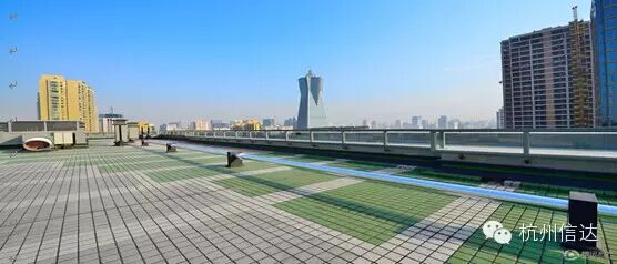 屋面上采用五种不同颜色的广场砖进行铺贴,按照“流动的音符”这个设计理念来进行图案排布。