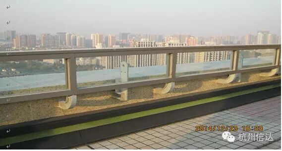 栏杆设置高度符合要求,选材坚固耐久,并且为日后蜘蛛人清洁外立面预留好固定装置,避免了后开孔。