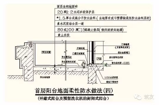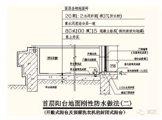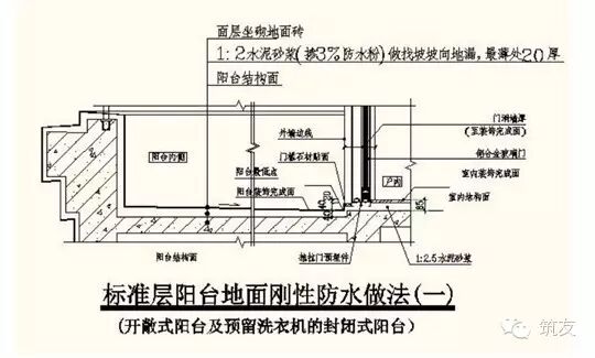 1、必须严格按阳台防水施工大样图满做防水,保证防水构造满足设计及规范要求。