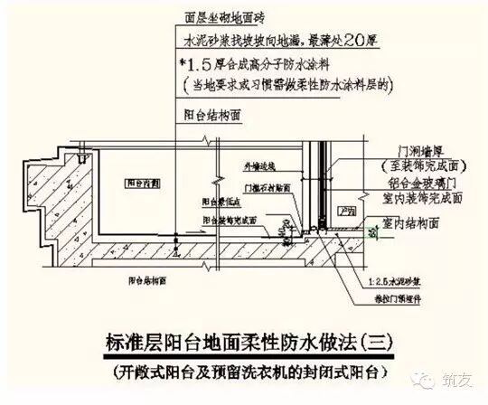 三、阳台防水施工节点大样图(以集团标准图集为例,施工时以施工图为准)