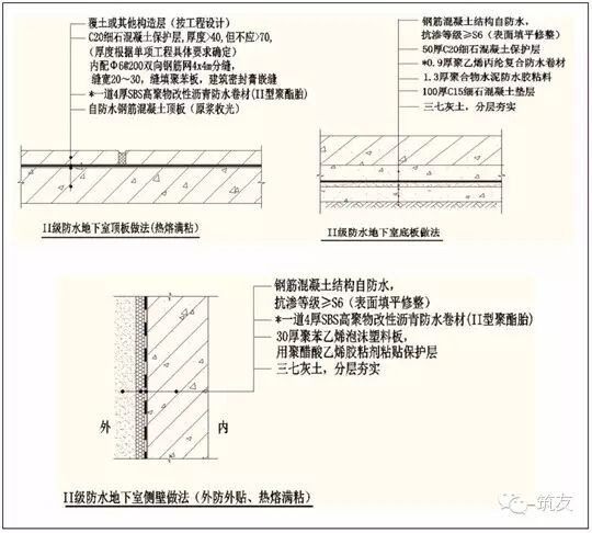 (二)地下室防水做法二(在北方地区温差较大及冬季5度以下施工时使用)