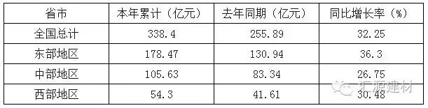 2015年1-11月防水行业投资完成额