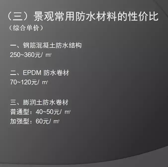 (二)景观常用防水材料及形式