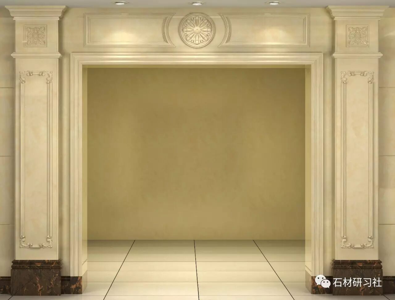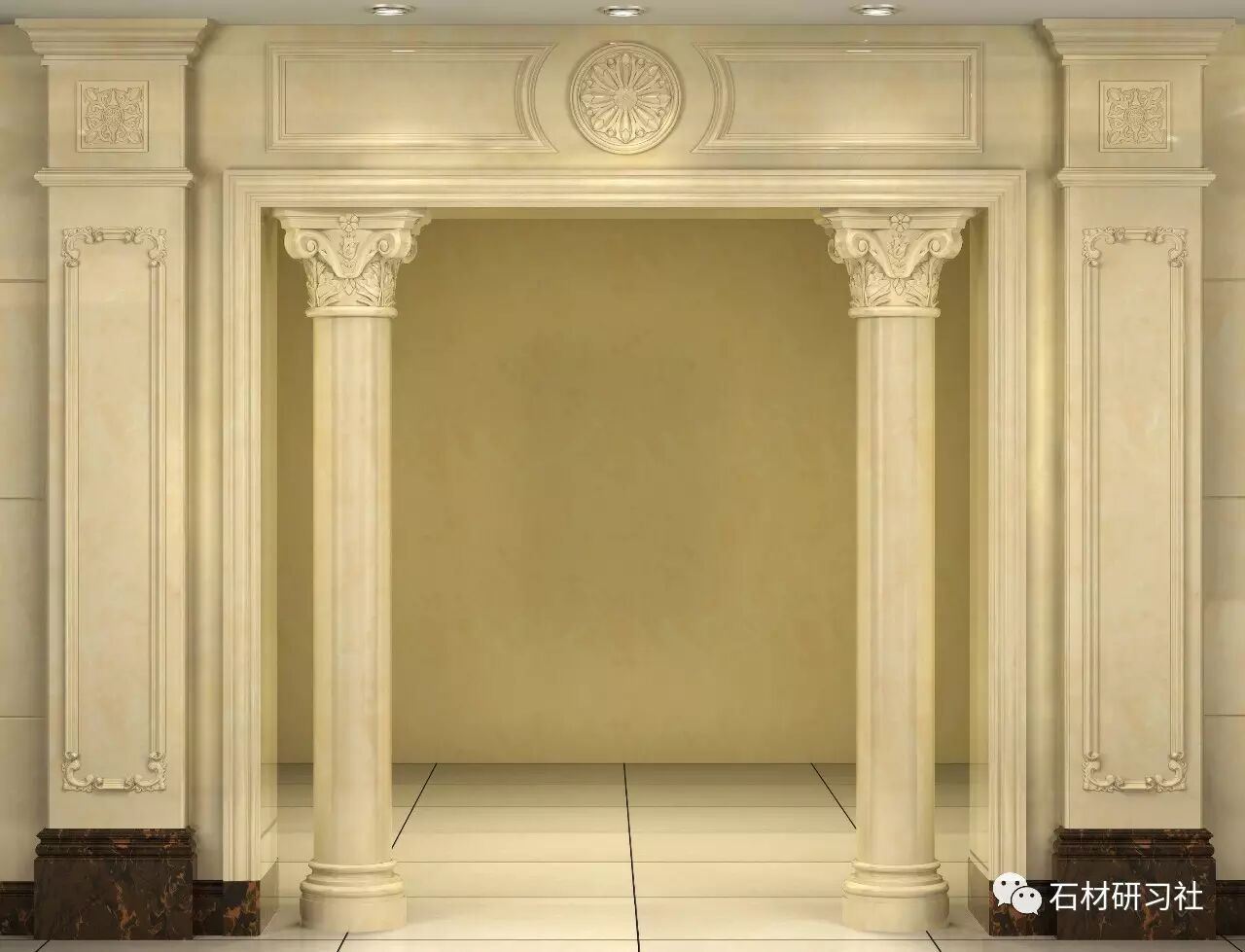 欧式系列多为双柱头,高端大气,档次自然不成问题啦,下图在客厅的整体搭配方面石材背景墙表现能力十分出众,大小柱头相配合,不单是表现了产品的造工精美,更是体现出来装修业主的家居装修品位,让人赞不绝口。