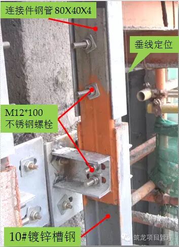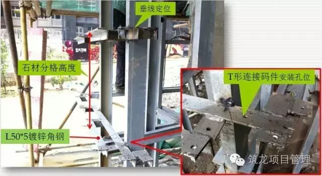 3、根据石材立面分格的尺寸,定位横梁的上下间距,左右跨度。