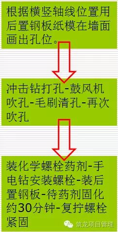 根据横竖轴线位置安装后置钢板。