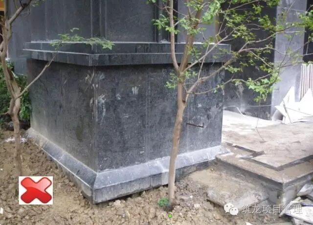 柱落地底座标高应与地面景观协调统一,避免造成上图中景观覆盖底座问题。
