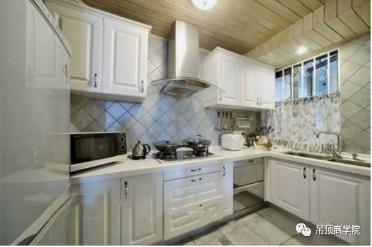 2.厨房、卫生间吊顶宜采用金属、塑料等材质。卫生间是沐浴洗漱的地方,厨房要烧饭炒菜,尽管安装了抽油烟机和排风扇,仍然无法把蒸汽全部排掉,易吸潮的饰面板或涂料就会出现变形和脱皮。因此要选用不吸潮的材料,一般宜采用金属或塑料扣板,如采用其他材料吊顶应采用防潮措施,如刷油漆等。