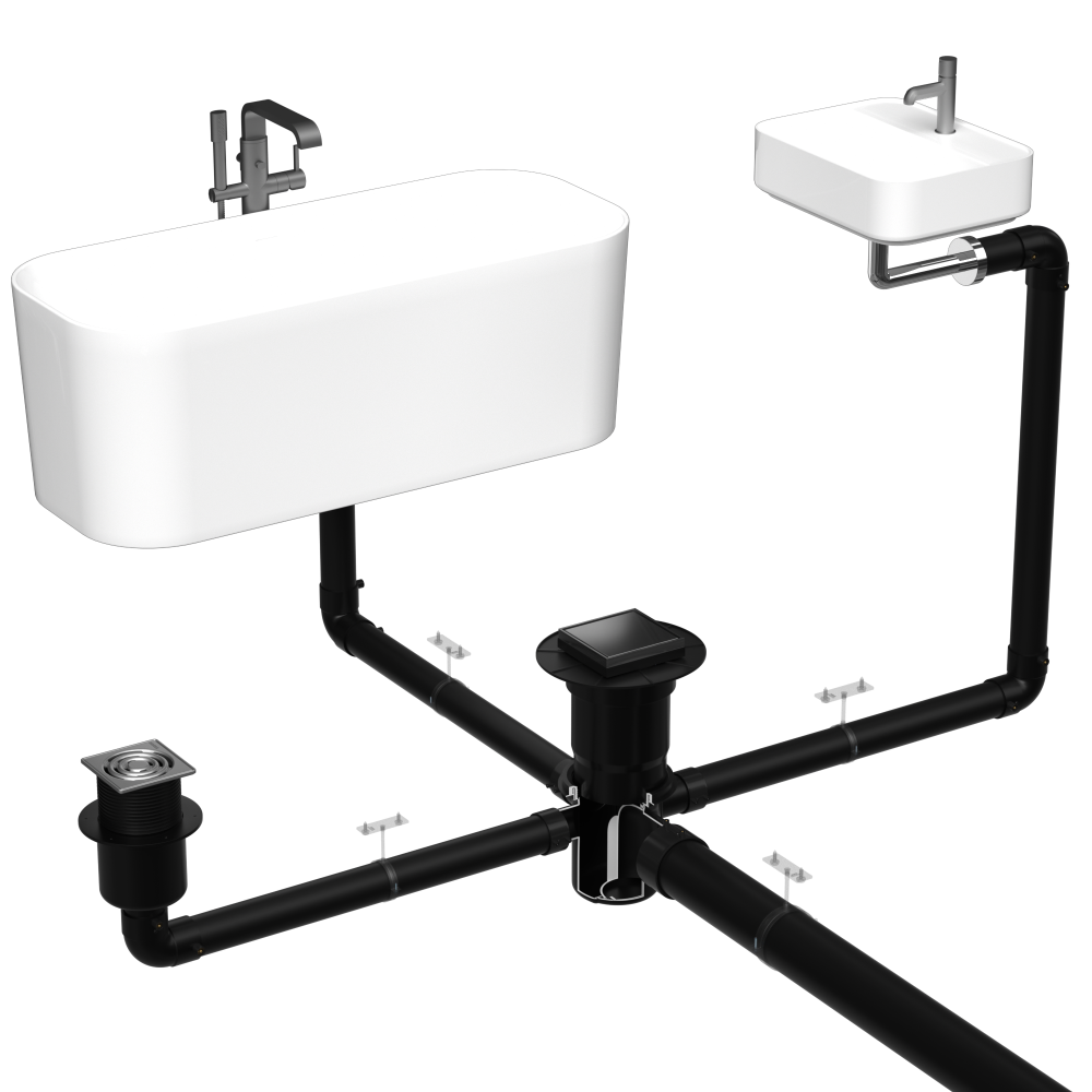 集成化布局,简化管路:一个汇集器可同时接入中央空调、淋浴、浴缸、洗衣机、扫地机器人、干湿地漏等多个排水支管,替代多个存水弯,让穿层排水管路更简洁,减少吊顶空间占用,也降低了堵塞概率。